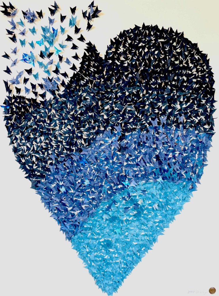 “1449 Blessings” – a 36” X 48” canvas with an open heart filled with 1449 butterflies. Completed July 2022 as a gift for a friend.