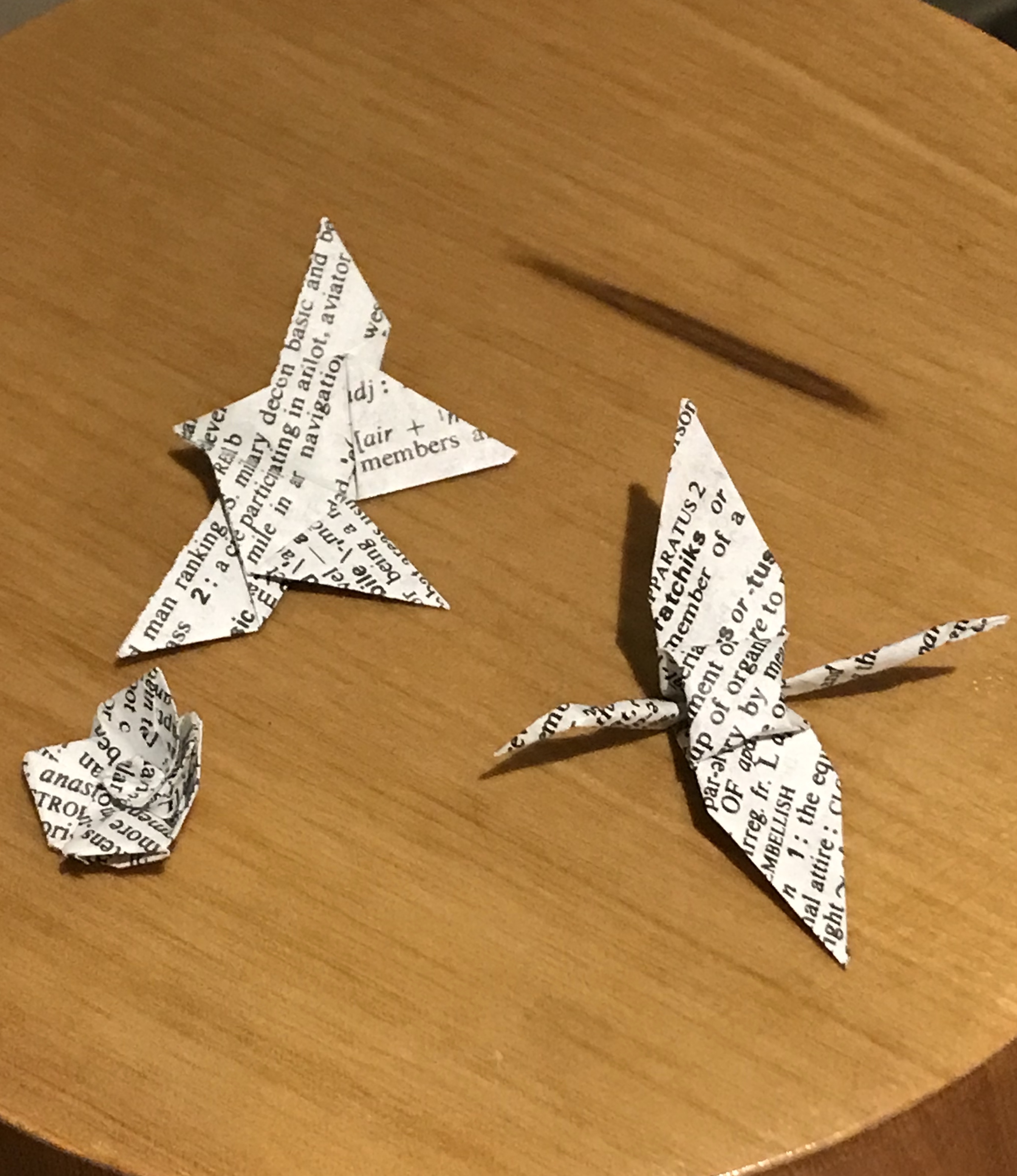 But my canvas of 1000 cranes, made out of sanitary pad paper? That might approach Art . . . I did get good at folding cranes because I folded 1000 of them. And it did take me a year to finish. But the end product is something that no one else would be able to easily replicate. It’s a thought, an idea, a story, that I can’t provide a pattern for.